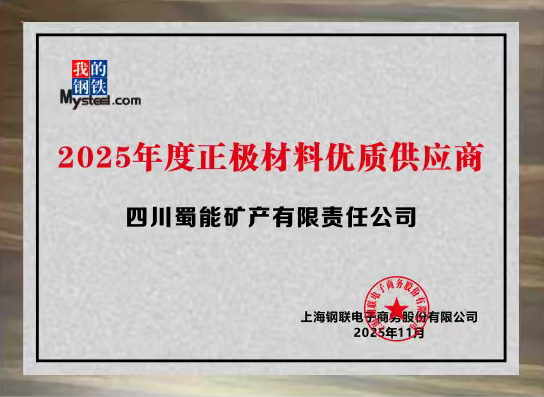 11月19日,2025(第五届)Mysteel新能源产业年会在成都成功举办,公司荣获年会“2025年度正极材料优质供应商”殊荣,公司副总经理万洪胜代表公司上台领奖。